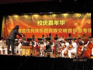 为了使我院的校企合作更进一步深化,我院阳明学院特别邀请了颇具企业文化特色的宁波富佳民族乐团来参加校庆友情演出,而宁波富佳企业又邀请我院大学生艺术团出部分节目与他们同台演出。