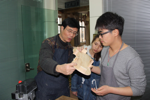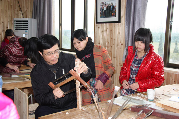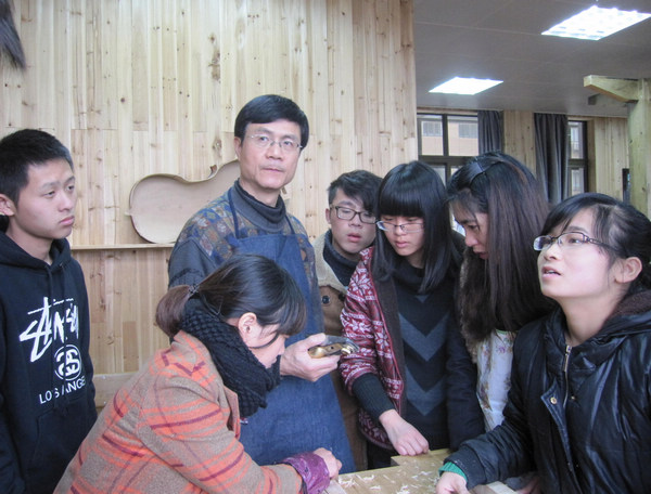 华院长见到提琴班24名同学甚是高兴,不一会儿就带着围裙和大家讲起来提琴制作的第一要事:如何正确磨刀——如何使用木工锯——如何正确使用提琴木工刨——如何正确使用雕琢琴板的刀具——如何选择材料——搭配材料——如何正确取材与下料(参见照片)。身临其境的专家一线授课,给同学们指明了正确科学的操作方法和梳理了一些共存的遗留的问题。班长施银淼同学说:“专业大家大师就是不一样:我们以前提琴制作实践课遗留困惑的问题,现经过华教授点拨,明白了应该如何作以及刀具的如何使用。比如说:现代经过改良的各种木工刨科学而顺手,这些工具必须取代于过去那种制作不精确的工具和淘汰的旧习惯。只有进步的才是科学的,只有科学的才能站得住脚根。只有科学的知识和技能才配得上我们高职院校的舞台上教学和传承下去。”