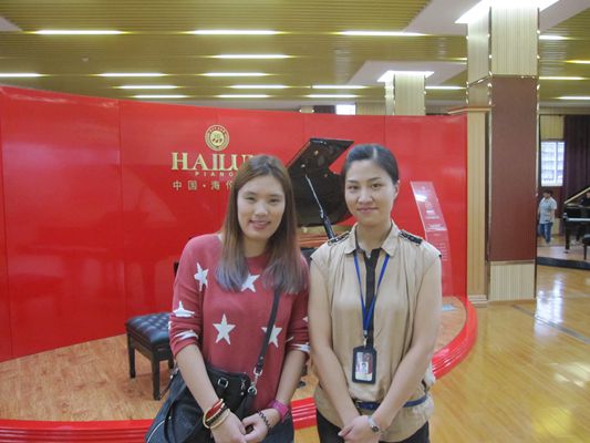 老校友郭腊香同学现已是海伦钢琴公司的钢琴检验师(右一)同学们向她投去羡慕的眼光