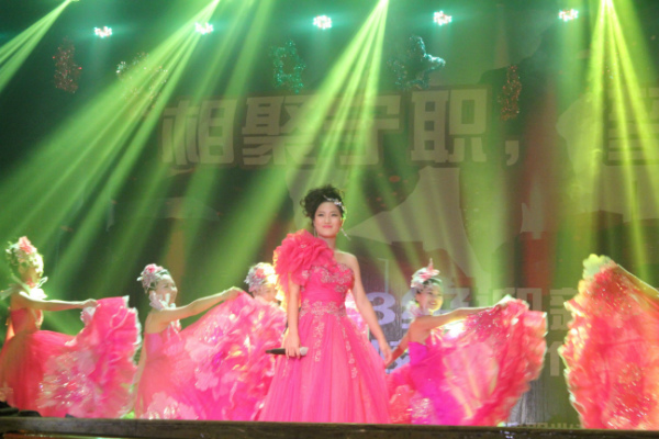 晚会尾声,我院的青年教工徐晓璐老师为大家带来歌曲《锦绣年代》,让同学们看到了我们的教师在课堂之外的独特魅力,同时也让我们对于教师有了更多地了解。歌声中饱含着对祖国大好风光的赞美和对未来道路的无限期望,绽放着青春与梦想的光芒。伴随着优美歌声翩翩起舞的是我院乐造专业的八位姑娘,她们用闲婉柔靡的舞姿为本场晚会画上圆满句号。