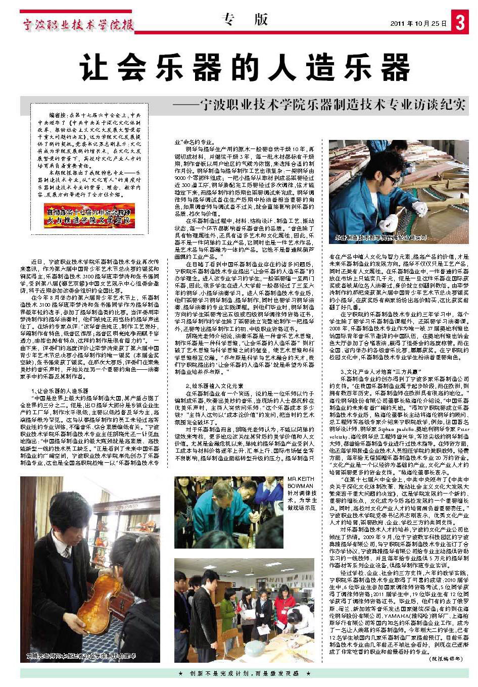 宁波职业技术学院院报——乐器制造技术专业专版